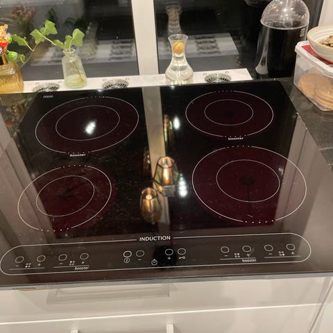 Whirlpool induktionshäll med svart yta. Används för matlagning med induktionsteknik.