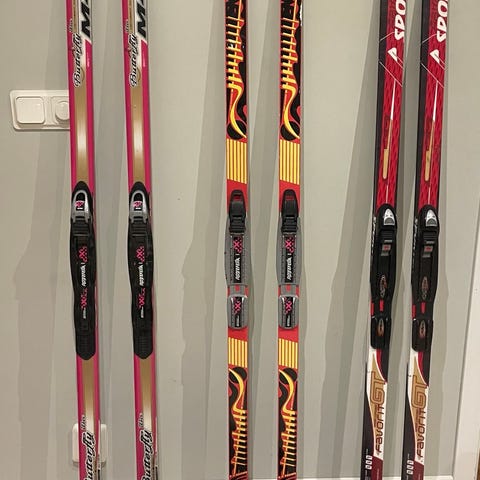 Vallningsfria längdskidor med bindning Salomon SNS. Finns även passande pjäxor i storlek 35.5, 36 eller 38 för 150:- per par.
