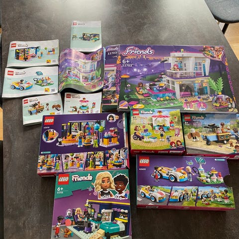 LEGO Friends LEGO byggsatser med flera byggbara delar och figurer. Innehåller olika byggnader