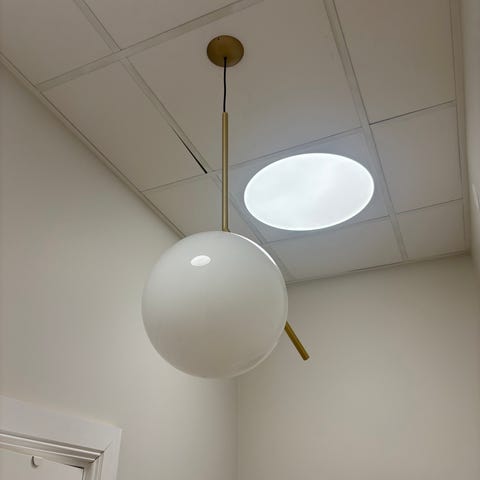 Perfekt skick, inget att anmärka på. I lamporna sitter Flos LED ljuskälla, dimbar (nypris 430kr/styck).