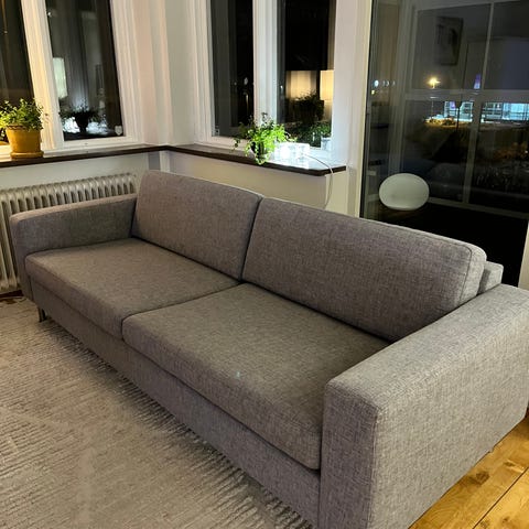 Soffa Wilmers ,köpt hos Leander Pehrson i Ystad .Tresittssoffa med puff ,puffens mått är 70-90 cm