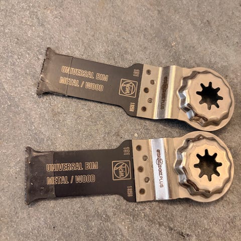 BS – bi-metall. Höglegerat snabbstål i tandkanten och segt verktygsstål i bladryggen. Hög skärförmåga och slitstyrka samt den flexibla bladryggen ger bladen lång livslängd. Medger högt matningstryck, hög skärhastighet och hög bladspänning.