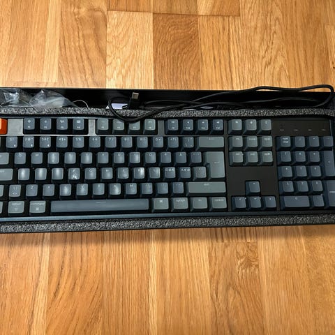 Jag har bytt keycaps till keychrons egna cherry caps i blått och vitt värde 600kr.