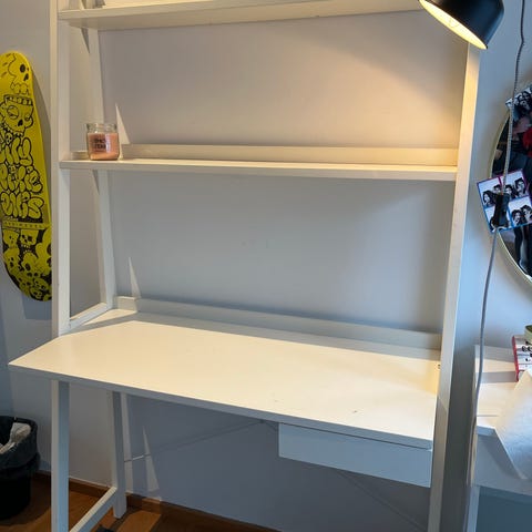 Fint skrivbord som knappt använts. Ett litet märke i skivan som spacklats. Se bild.
