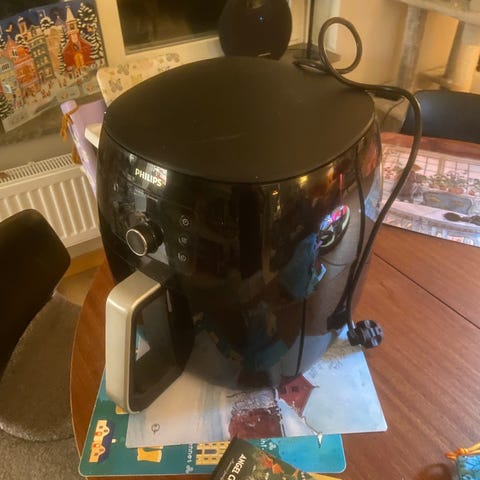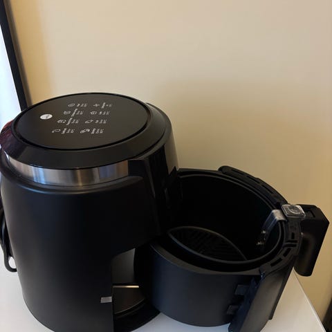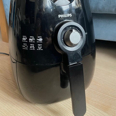 Tefal Airfryer för tillagning av mat med varmluftsteknik. Svart färg och kompakt design som passar i kök för hälsosammare matlagning.