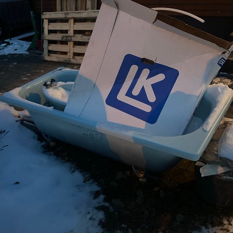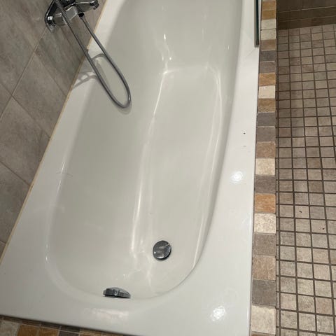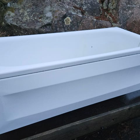 Gustavsberg badkar i emaljerat stål med front på långsidan. Längd 160cm, bredd 70cm, höjd 48cm)