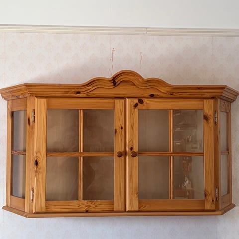 Furuskåp med vitrin