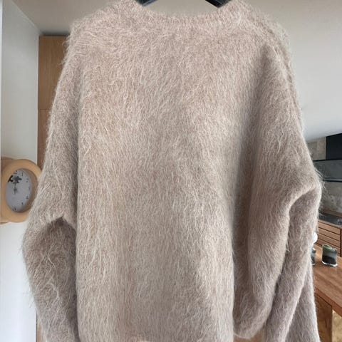 Carin Wester krop kofta i brun färg, storlek M för dam. Tröjan har en lös passform och rund halsringning.