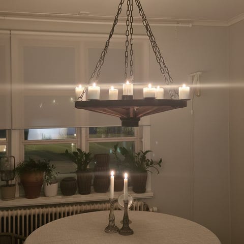 Stor vacker ljuskrona , 40 cm + i diameter i mycket fint skick.