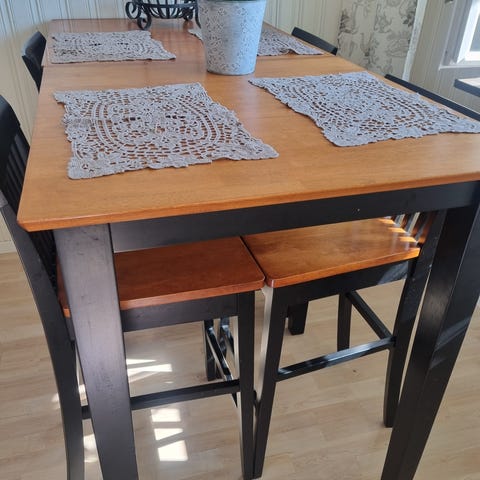 Kök bord , använd skick, liten skada på bänkskivan , lätt att reparera.