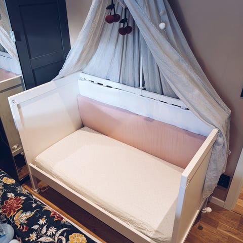 Nypris totalt 2394kr (1795kr Sundvik spjälsäng + Krummelur madrass 599kr)