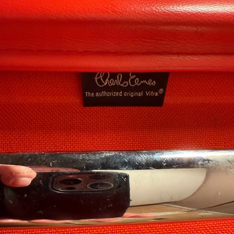 Skrivbordsstol i svart läder med aluminium ben från Vitra. Designer Charles & Ray Eames.