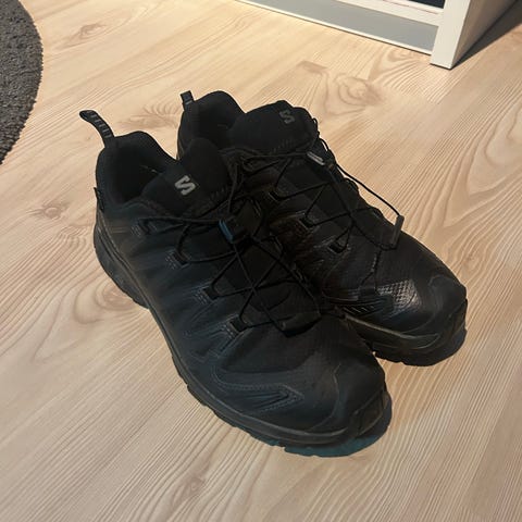 Salomon Sneakers i storlek 41 1/3 med en kombination av grått och rosa färg. Skorna är tillverkade i material som lämpar sig för utomhusaktiviteter och har en slitstark sula med bra mönster för grepp. nästan nytt skick. det enda är att det finns några färgfläckar från när jag målade min lägenhet.