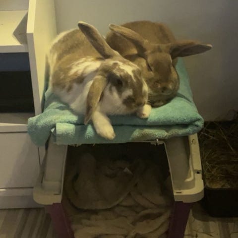Söt vit kanin. 1 år gammal, van både inomhus och utomhus.