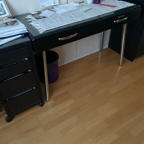 Svart skrivbord+ golvskydd + Hurts med lådor, svartbrun – kan säljas separat