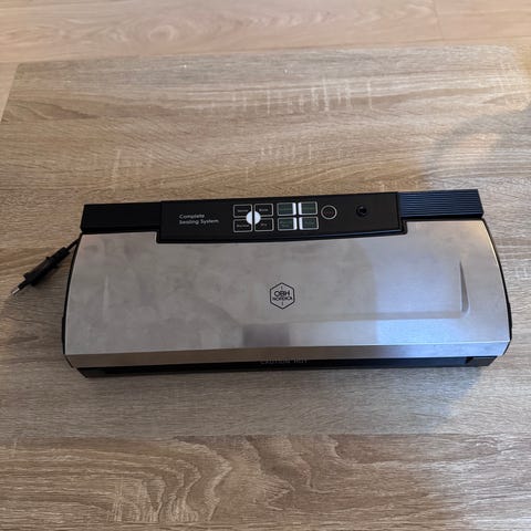 OBH Nordica vakuumförpackare med tillbehör inklusive vakuumpåsar. Produkten är avsedd för hushållsbruk och används för att förlänga hållbarheten på livsmedel genom vakuumförpackning.
