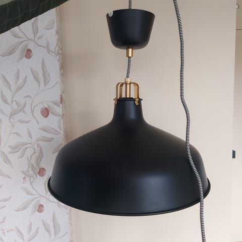 Taklampa från Northlight (Clas Ohlson) i vit textil.