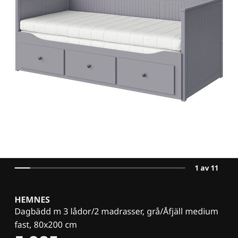 Denna dagbädd är i mycket bra skick. Den har stått i vårt gästrum och endast använt ett fåtal gånger. Den går att använda både som soffa och säng, och då både enkelsäng och dras lätt ut till dubbelsäng. Tre stora lådor med bra förvaring under. Två madrasser ingår.