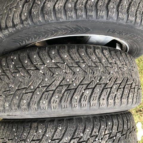 Dubbdäck på plåtfälg. Suttit på Prius-06.