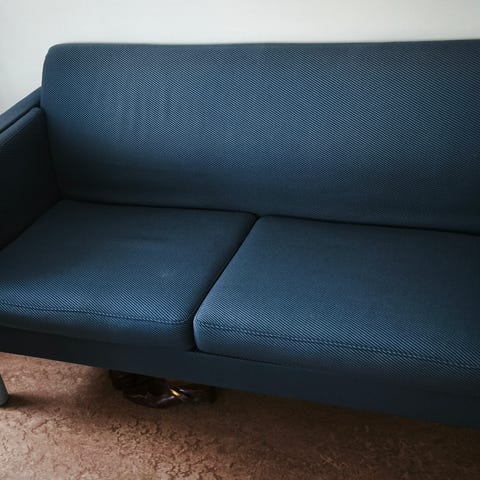 IKEA soffa i svart färg. Soffan har en enkel och modern design med raka armstöd och två ryggkuddar. Idealisk när barnens kompisar ska sova över.