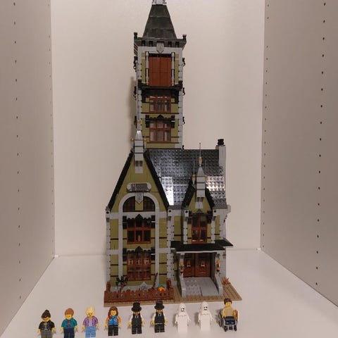 Kan delas upp våningsvis. Extraklossar och belysning (ljus) ingår. Cirka 2000 byggklossar totalt.