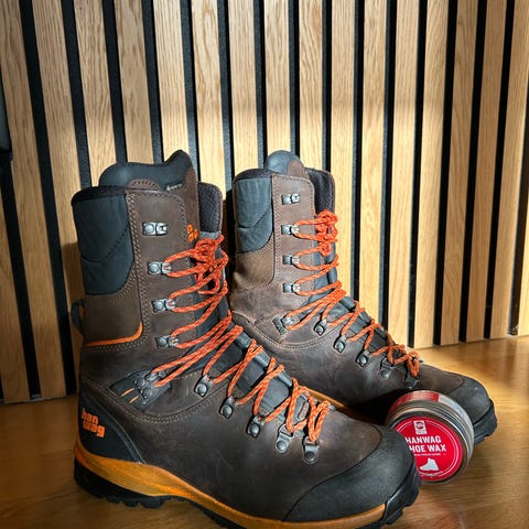 kängor i brun färg, storlek 41. Kängorna är tillverkade i läder och textilmaterial och har snörning fram. De är avsedda för användning i utomhusmiljöer och erbjuder stöd och skydd för fötterna.