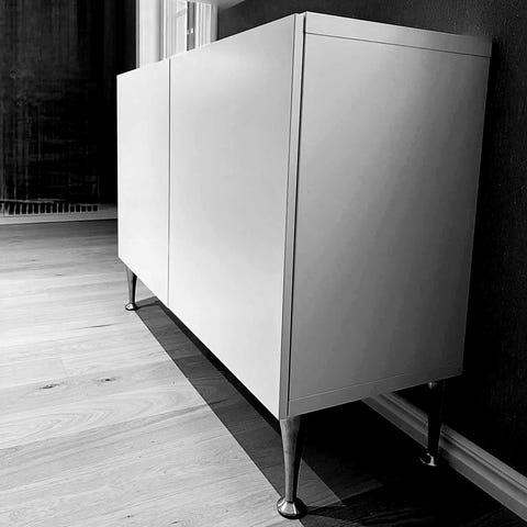 Egentligen ett väggmonterat rackskåp (15U) men har förstärkt botten med plywood och använt som skåp till 3d-skrivare.