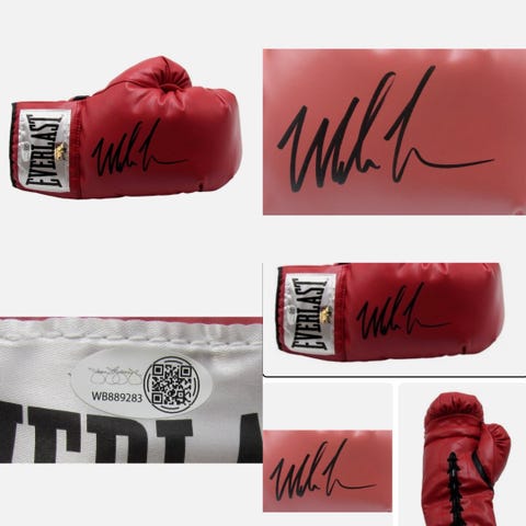 100% äkta autografer/signerade foton/bl.a Mike Tyson Handske m.f