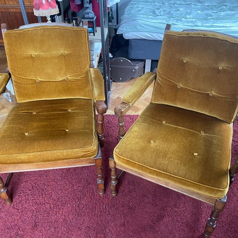 1 st Fåtöljer i svart sammet med hög rygg och spiklistdetaljer. Passar för vardagsrum eller läshörna och erbjuder komfort med sin stoppade sits och ryggstöd.