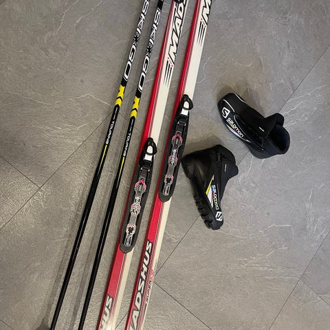 Fischer universal RCR längdskidor 2 par. Längd 177 cm, 167 cm. 250:-/par Pjäxor Salomon 1 par, storlek 39 1/3. 100:- /par
