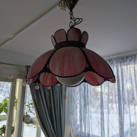 Mycket fin taklampa, Tiffany-stil, rosa, 1900-talets andra hälft.
