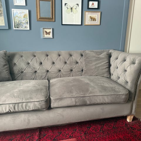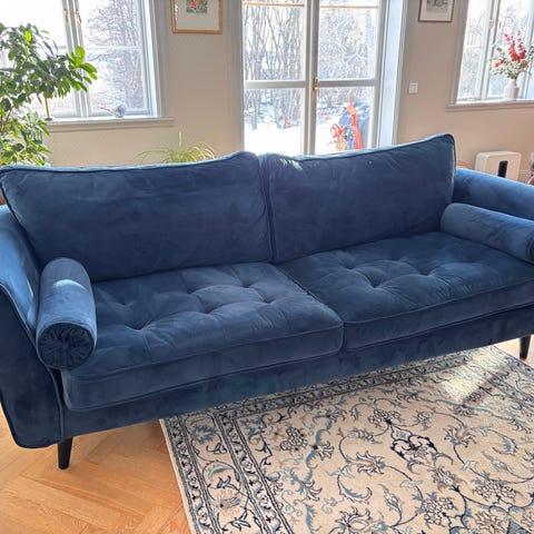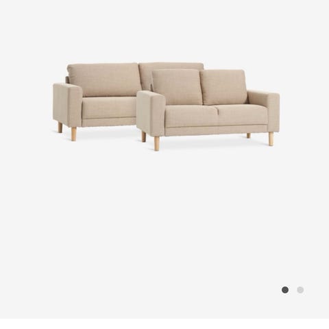 Ena 3-sitssoffan saknar en knapp men syns knappast.