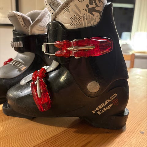 Pjäxorna är avsedda för barn och har två spännen för justering och stöd.
