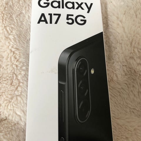 Helt ny och oöppnad Samsung Galaxy A17 5G mobiltelefon med 128 GB lagringsutrymme. Färgen är svart. Telefonen stödjer 5G-nätverk och tillhör Galaxy A-serien. Köpt på Tele.se, se kvitto.