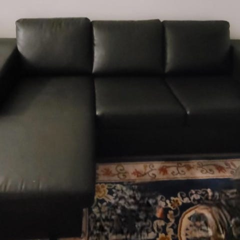 Mörkbrun soffa i konstläder.