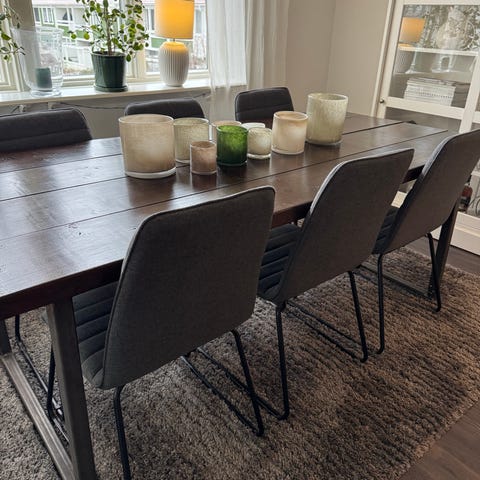 Mio stol i svart färg. Stolens svarta tyg går inte att ta av men smidigt att kunna torka av. Säljes i 4 pack! Ordinarie pris för alla var 2500kr