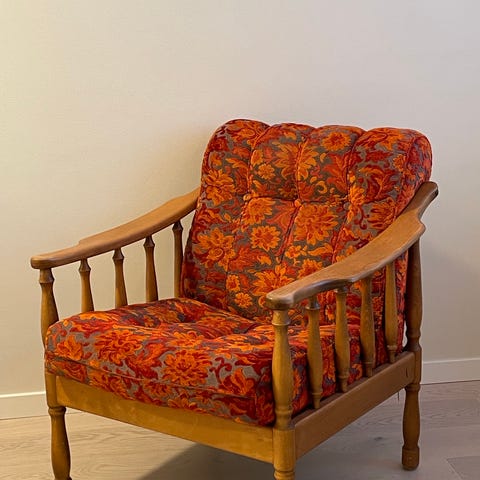 Säljer vår snygga retrosoffa i skandinavisk 50-talsstil! Grön sammetstyg med knappar i rygg, höga smala träben och vingar. Superfin möbel för den som gillar mid-century modern look. Sitter skönt och ger rummet karaktär.