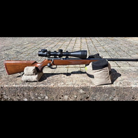 Liten smidig 22a som skjuter bra. Bakstocken är sågad så den går korta för dom minsta som också vill skjuta. Gängad M15 för ljuddämpare. Finns 3 orginalmagasin, 2st 5skott och 1st 10skott.
