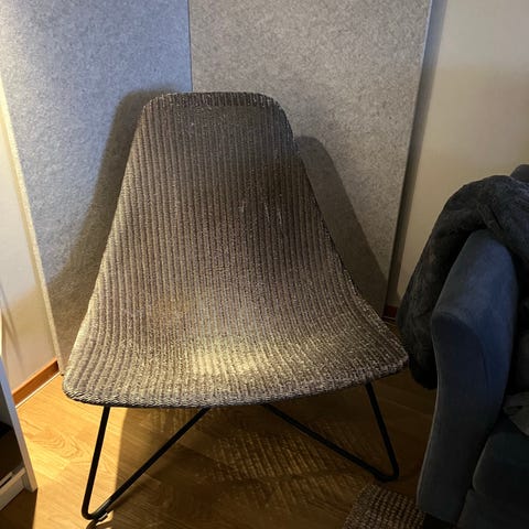 Gilroy karmstol är en stol i grå sammetstyg med dekorativt mönster samt svarta metallben. Hög sittkomfort!!!