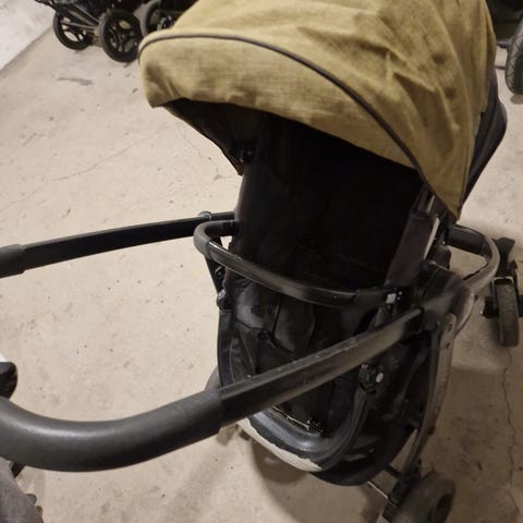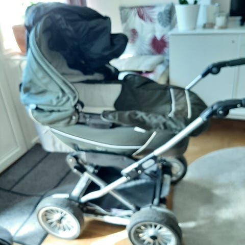 Endast sittdel ingår, har ingen liggdel. Den är vändbar så man kan ha barnet både framåt och bakåt.