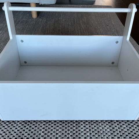 IKEA Förvaring Hylla med fyra fack och fyra mjuka lådor i olika färger (grå, svart och rosa). Hyllan är vit och avsedd för organisering och förvaring i hemmet.