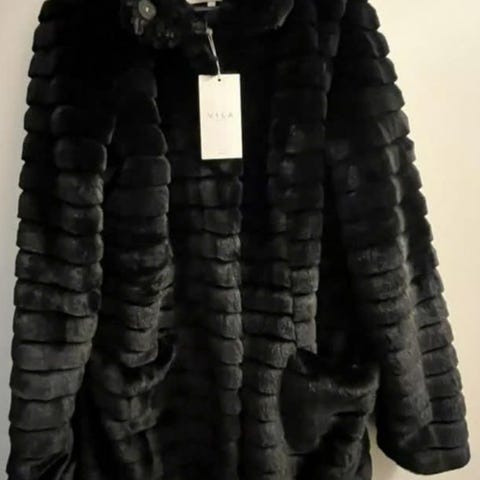 Väst i pälsimmitation från H&M med luva och resår nertill och sidenfoder stl 36/38