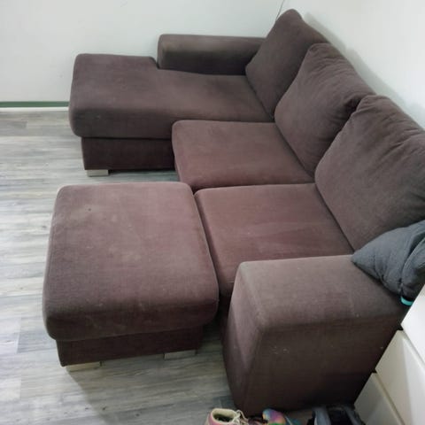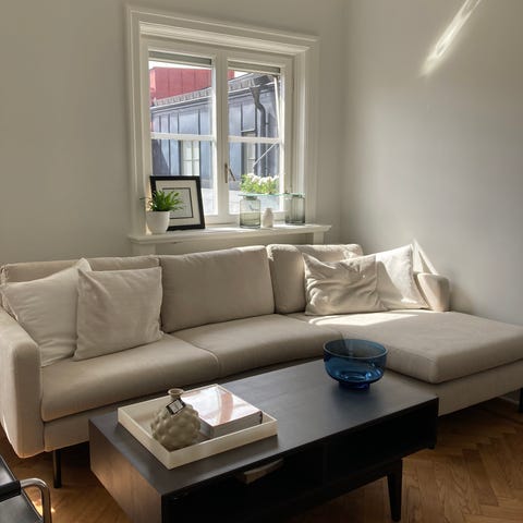 Grå divansoffa.