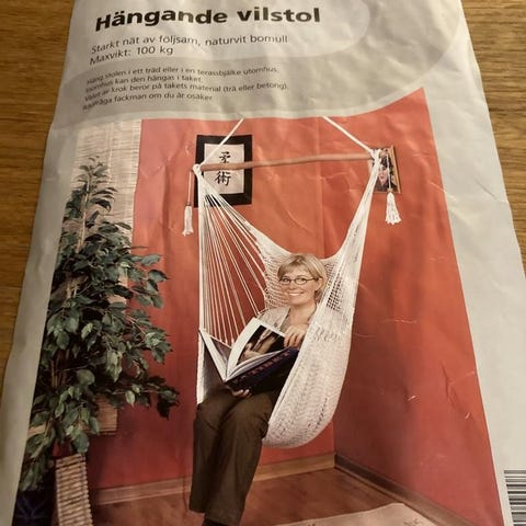 Säljer en hängstol som är i gott skick, använd i ca 2,5 år. Köpt ny för 6200 kr på Trademax.se.
