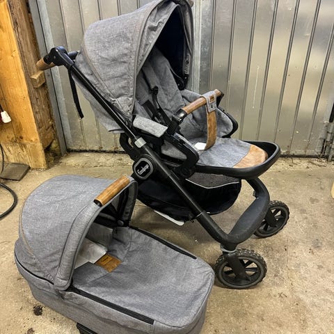 Emmaljunga nxt90 i beige färg med liggdel/sittdel. Vi är den enda ägaren till vagnen och är uthämtad december 2020. Vagnen är i fint skick förutom några små repor som blivit på chassit när man lastar in och ur vagnen samt någon liten fläck baktill på tyget på sittdelen