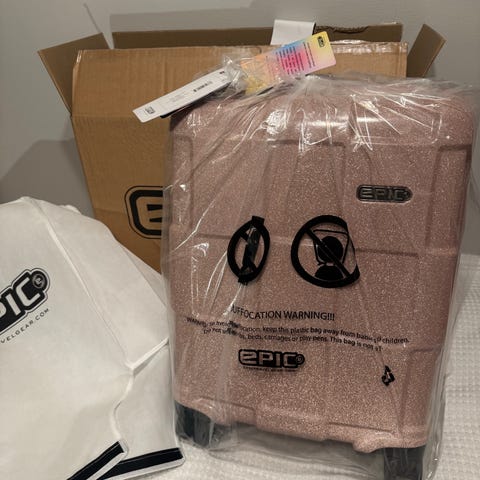 Skick: Begagnad, se bilder för skick. Dragkedja och hjul fungerar.