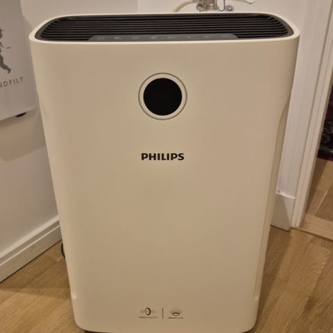 Philips luftrenare AC3259/10, sparsamt använd så fortfarande i mycket bra skick. Produkten är utformad för att rena luften i inomhusmiljöer och förbättra luftkvaliteten.