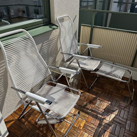 Säljer två stycken solstolar som är i originalförpackningen. Dem är inte använda. Bra solstolar som går att fälla ihop och ta med sig som ett handtag.