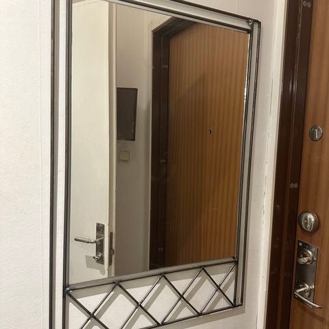 Säljer en mycket fin och välvårdad spegel i form av ett klassiskt valvfonster. Spegeln har en robust mörk ram (metall/trä-look) med dekorativa spröjs som ger en härlig rymd och karaktär till rummet.