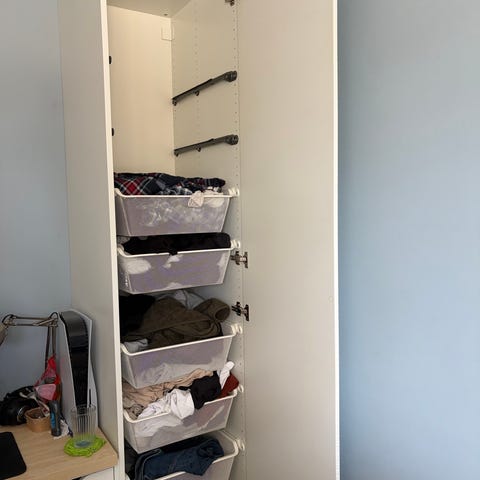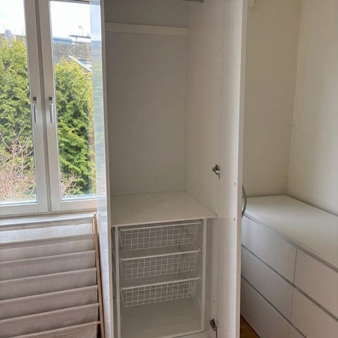 IKEA garderob med lådor i vitt och träfärg